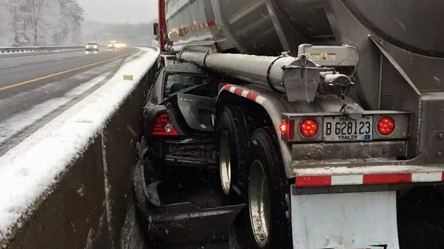Při pohledu na fotky této vážné dopravní nehody docela mrazí. O to více vás překvapí, že řidič osobního auta odešel po svých. Paradoxně to byl řidič cisterny, kdo nakonec utrpěl větší zranění. Ten den panoval velký mráz a silnice byly prý těžko sjízdné. A právě led a mráz zapříčinily nebezpečnou srážku. Vše se odehrálo v USA ve státě New Hampshire.