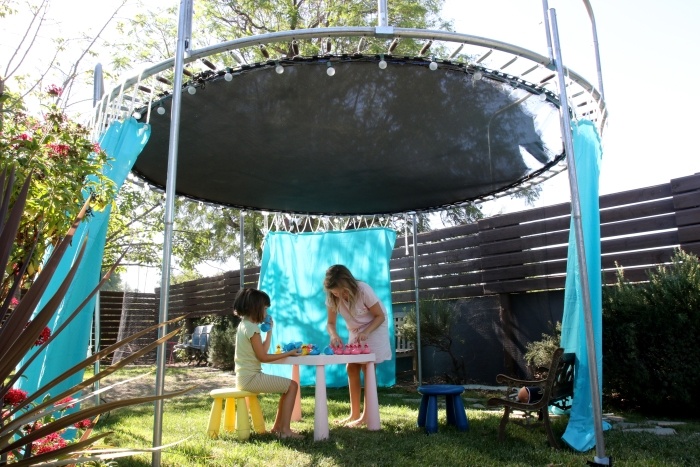 Trampolínu, která definitivně dosloužila, můžete přetvořit také na zahradní altánek. Vyhrají si v něm nejen děti.