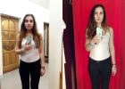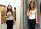 Žena se fotí ve zkušebních kabinkách různých obchodů s oblečením. Chce ukázat, jak tyto obchody opticky klamou zákazníka